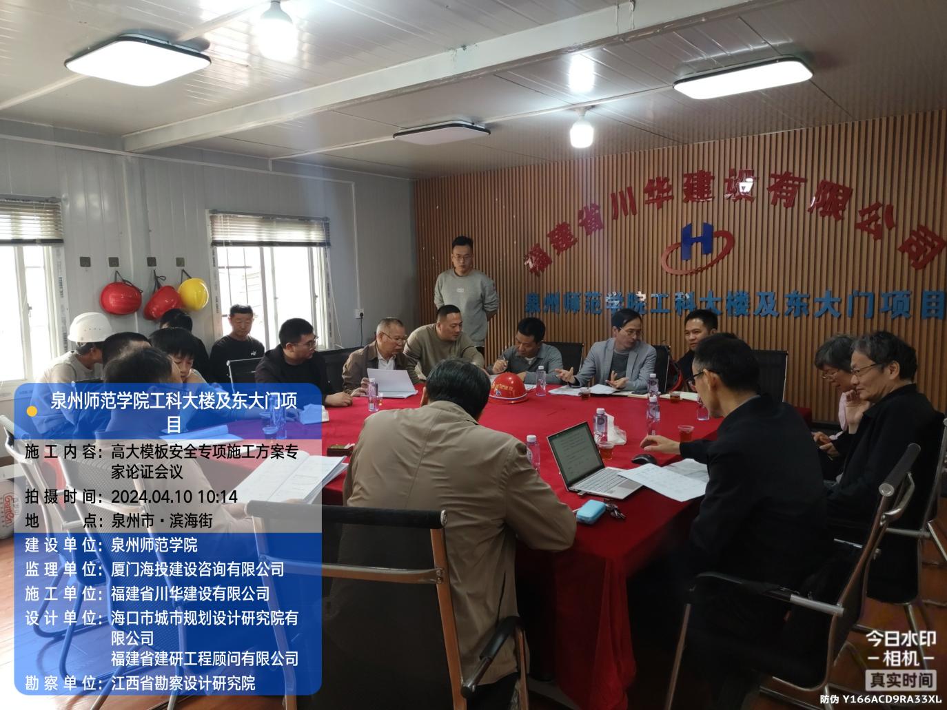 根据《危险性较大的分部分项工程安全管理规定》文件要求,2024年4月10日,工科大楼项目在项目部组织召开高大模板(超过一定规模的危险性较大工程)安全专项施工方案专家论证会议,邀请相关行业专家进行专项论证,提出方案优化建议,进一步完善本方案。
