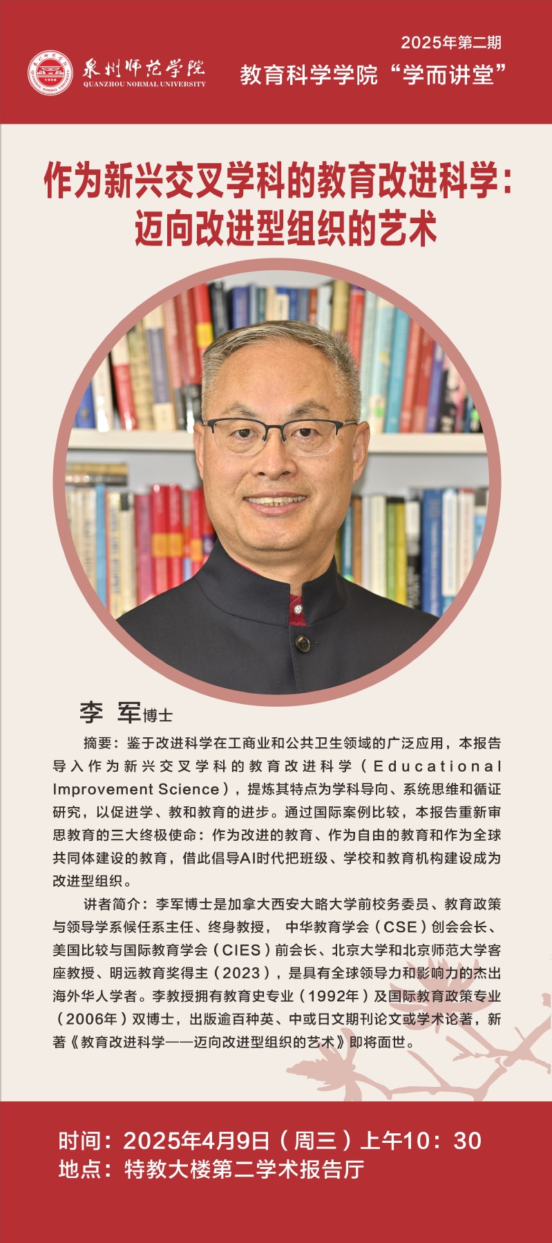 讲座预告:李军 《作为新兴交叉学科的教育改进科学:迈进改进型组织的艺术》