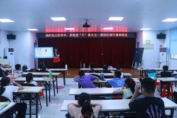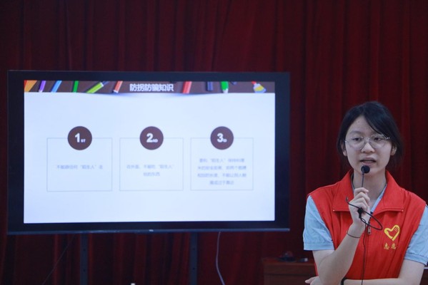 “每年暑期,溺水都是威胁孩子安全的‘头号杀手’。”暑期学生自护课上,志愿者以PPT展示触目惊心的数据与真实案例,重点解读防溺水“六不”准则,随后延伸至交通安全——强调行人靠右行、未满12岁禁骑车上街、网约车要记车牌号”等细节;对自然灾害避险技巧及拒绝三无食品的饮食安全原则也逐一讲解。课堂上,“发现有人落水第一步该做什么?”“如何拒绝陌生人的糖果?”等问题引发抢答,志愿者结合情景模拟纠正认知误区,如溺水施救不能迎面靠近、打雷时远离大树,让安全知识在问答中扎根。