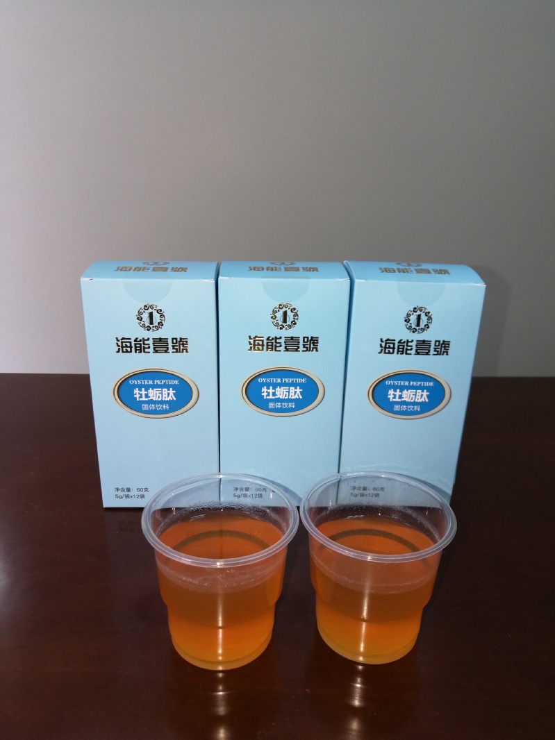 2. 项目介绍:本项目利用可控酶解、高效脱腥等技术制备了溶解性高、腥味少的牡蛎短肽,通过添加植物有效活性成分复配,利用协同增效配伍技术,研制了牡蛎肽抗疲劳固体饮料产品。本项目由开云kaiyun官网桐江学者讲座教授章超桦领衔的“海洋食品营养与功能研究团队”完成。牡蛎是我国卫生部公布的第一批68种药食同源的食品之一,据最新研究表明牡蛎肽具有增强免疫、降血糖、降血脂、抗疲劳、保护肝脏、抗氧化等多种功效。本项目以牡蛎肉为原料,通过多酶耦联可控酶解技术制得小分子牡蛎活性肽,还最大程度地保留了牡蛎中的牛磺酸、多糖、锌等有效成分;将牡蛎短肽与人参提取物复配强化的抗疲劳健康营养食品,冲饮后会使饮者元气大增,快速恢复疲劳;第三方认证机构小鼠负重游泳试验证实其具有缓解体力疲劳功能。本项目技术属于生物技术及功能保健技术领域。