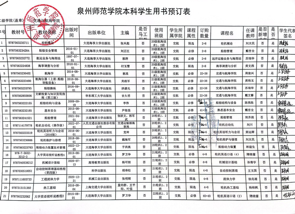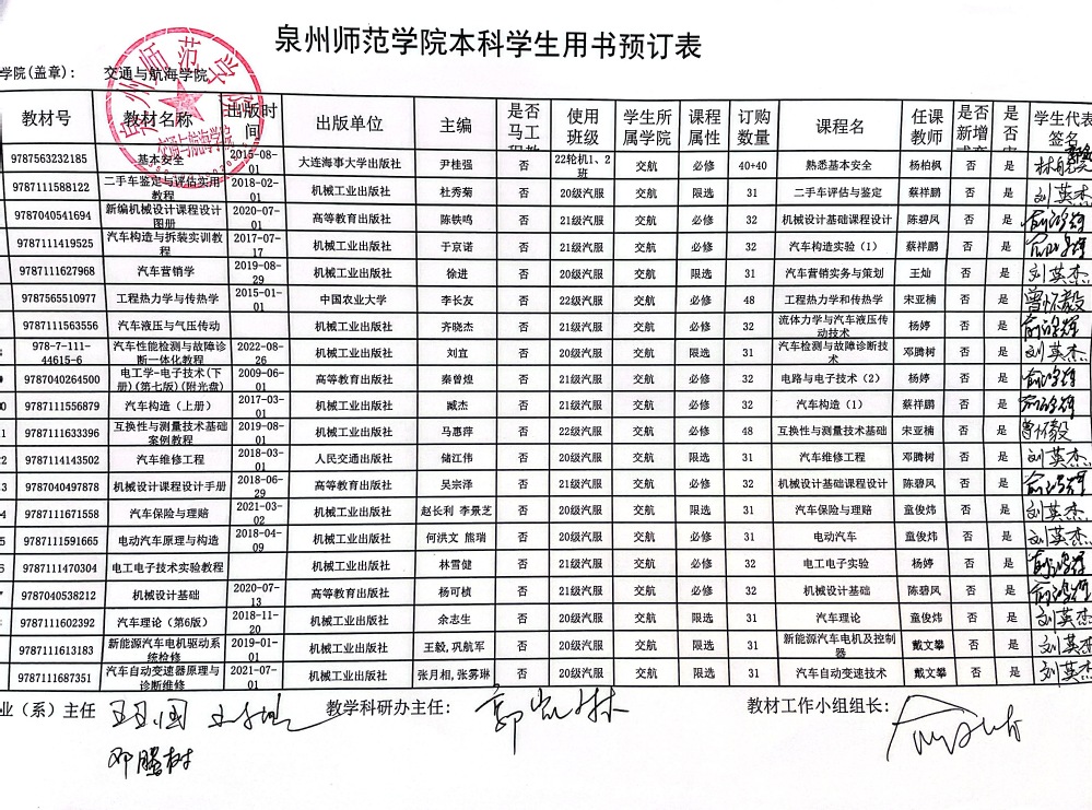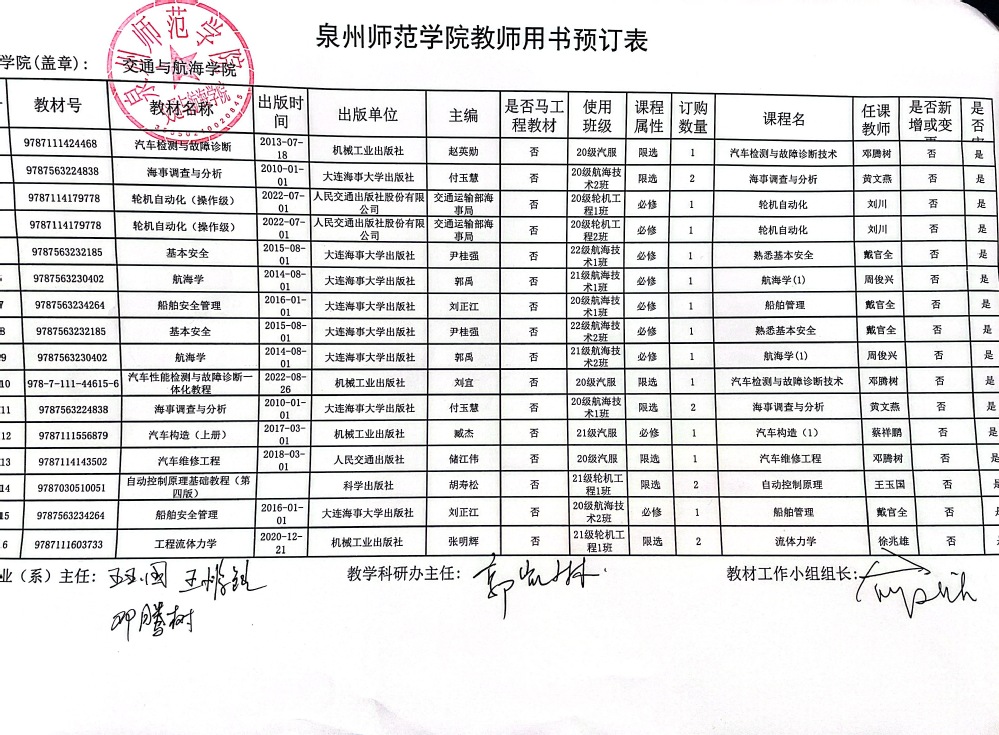 交通与航海学院2022-2023学年第二学期教材选用公示
