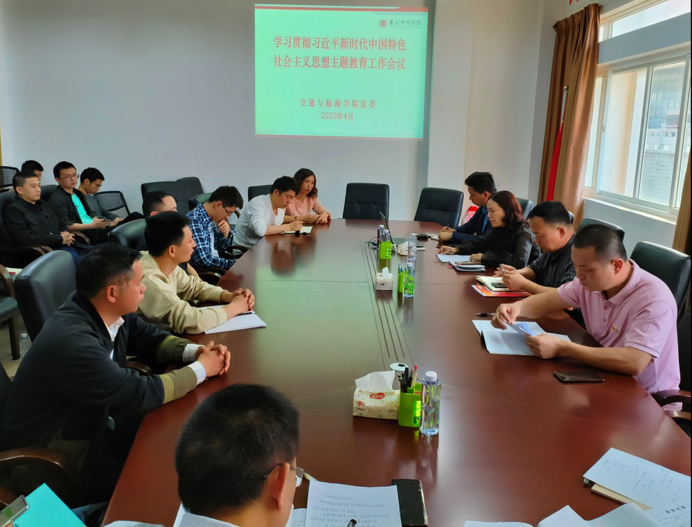 4月20日,交通与航海学院召开学习贯彻习近平新时代中国特色社会主义思想主题教育工作会议,深入学习贯彻习近平总书记重要讲话精神,落实中央、省委和校党委要求,对全院主题教育进行再动员再部署。院党委书记、院主题教育领导小组组长陈霞红作动员讲话,院长俞文胜,院党委副书记兼纪委书记陈昭阳,院党委委员、副院长黄文燕,全体党员、教职工参加会议。