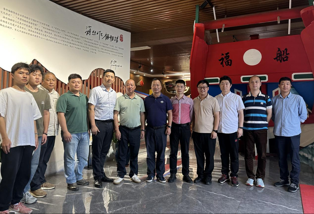 考察团第二站来到了福船非物质文化遗产基地,与福船非遗传承人林配宗进行了深入交流。双方围绕福船文化非遗的传承与发展进行了交流,就未来可能的合作方向进行了富有前瞻性的探讨,加强了学院与非物质文化遗产企业之间的合作关系,也为学院在《船模工坊》课程教学及文化遗产研究方面提供了新的思路。