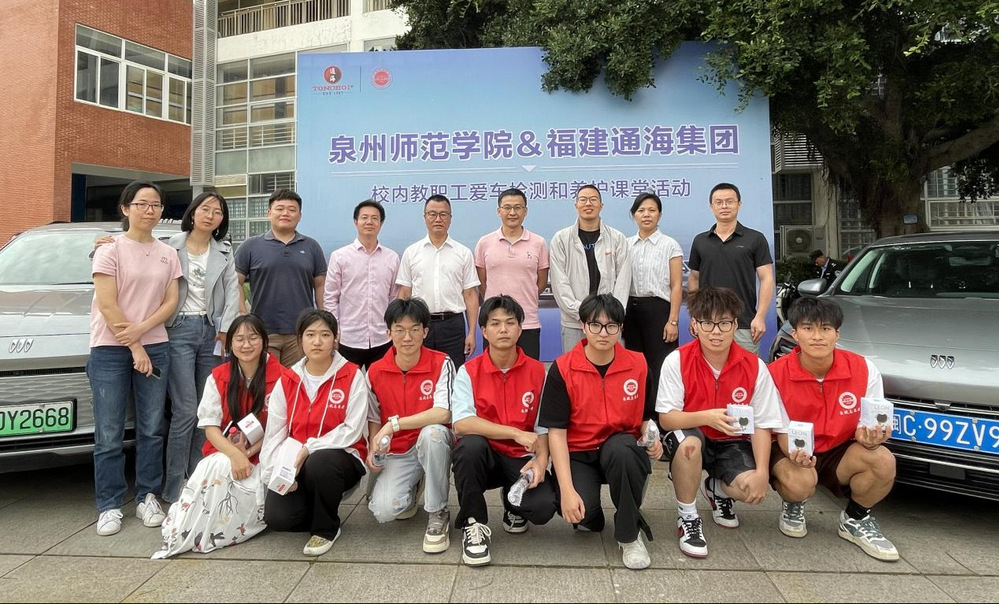 活动现场,交通与航海学院汽车服务工程专业师生党员和积极分子组成的自愿服务团队,积极配合福建通海集团专业技师团队为学校教职工的汽车提供空调系统、车内雾化杀菌、底盘安全以及发动机舱油水添加等免费车辆检测服务。同时,现场还设置了新能源车辆鉴赏区,展示4台新能源汽车,并由专业内训师对新能源产品核心技术进行现场讲解,吸引了众多教职工和学生的关注。