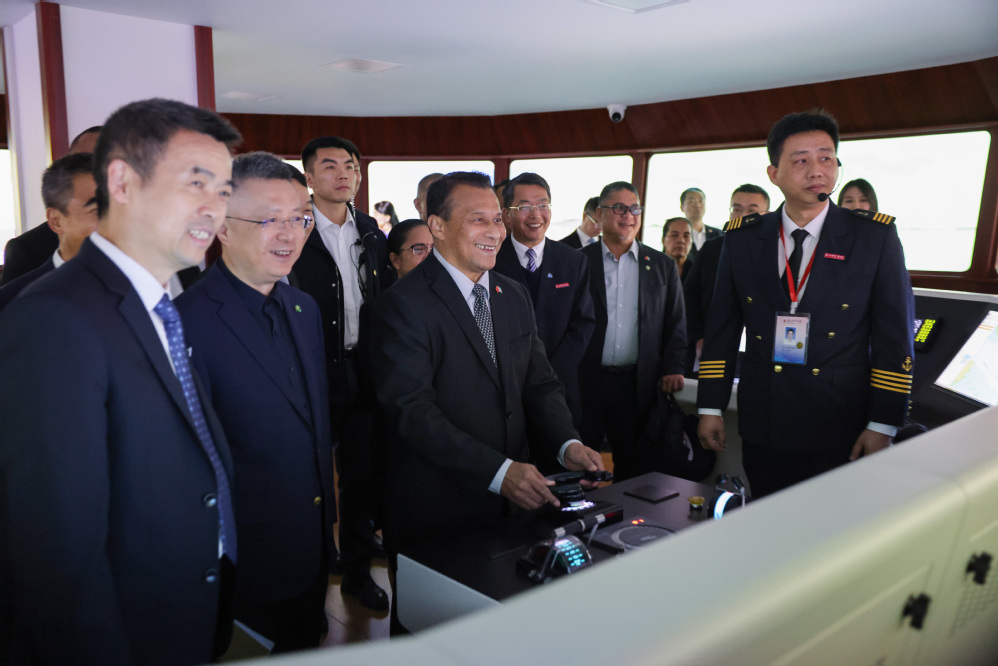 密克罗尼西亚联邦副总统阿伦·帕利克体验操作360°大型船舶操纵模拟器