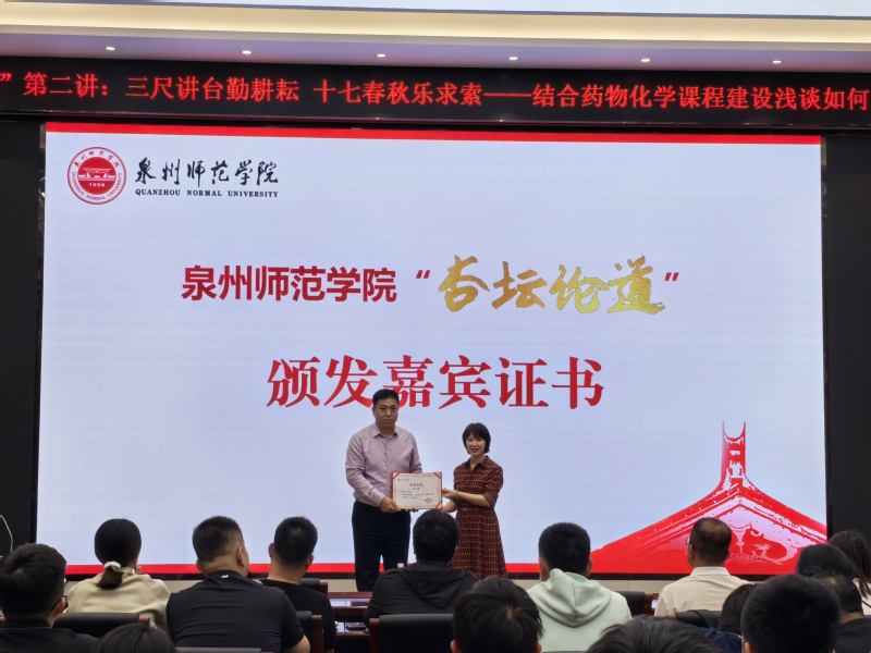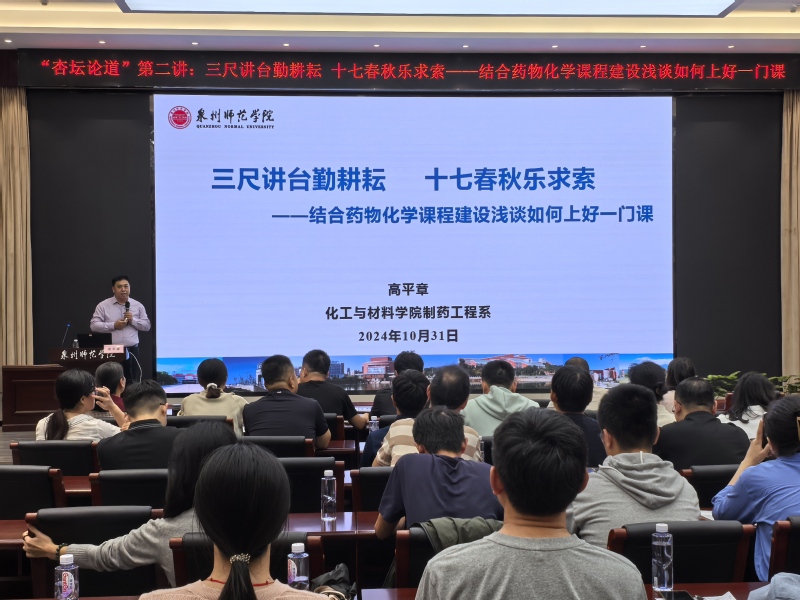 第三届福建省青年教师教学竞赛二等奖、第四届福建省高校教师教学创新大赛二等奖获得者化工学院高平章做《三尺讲台勤耕耘 十七春秋乐求索--结合药物化学课程建设浅谈如何上好一门课》讲座,高老师从如何备好、讲好、建好、用好一门课与老师分享了课程建设、教学竞赛参赛经验。与会教师纷纷表示收益良多,对提高教学能力有很好的帮助。