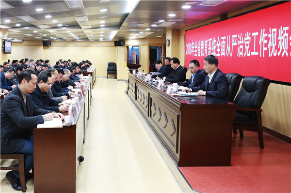 3月9日下午,省教育厅党组(省委教育工委)召开2018年全省教育系统全面从严治党工作视频会议,深入贯彻习近平新时代中国特色社会主义思想和党的十九大、十九届中央纪委二次全会和省纪委十届三次全会精神,以及全国教育系统全面从严治党工作视频会议部署,回顾总结2017年全省教育系统全面从严治党工作,研究部署2018年工作任务。省委教育工委书记、省教育厅党组书记、厅长黄红武同志作部署讲话,省纪委驻省教育厅纪检组组长、省纪委教育工委书记巫文通同志作工作报告。省纪委第三纪检监察室副厅级主任邓世章莅会指导。