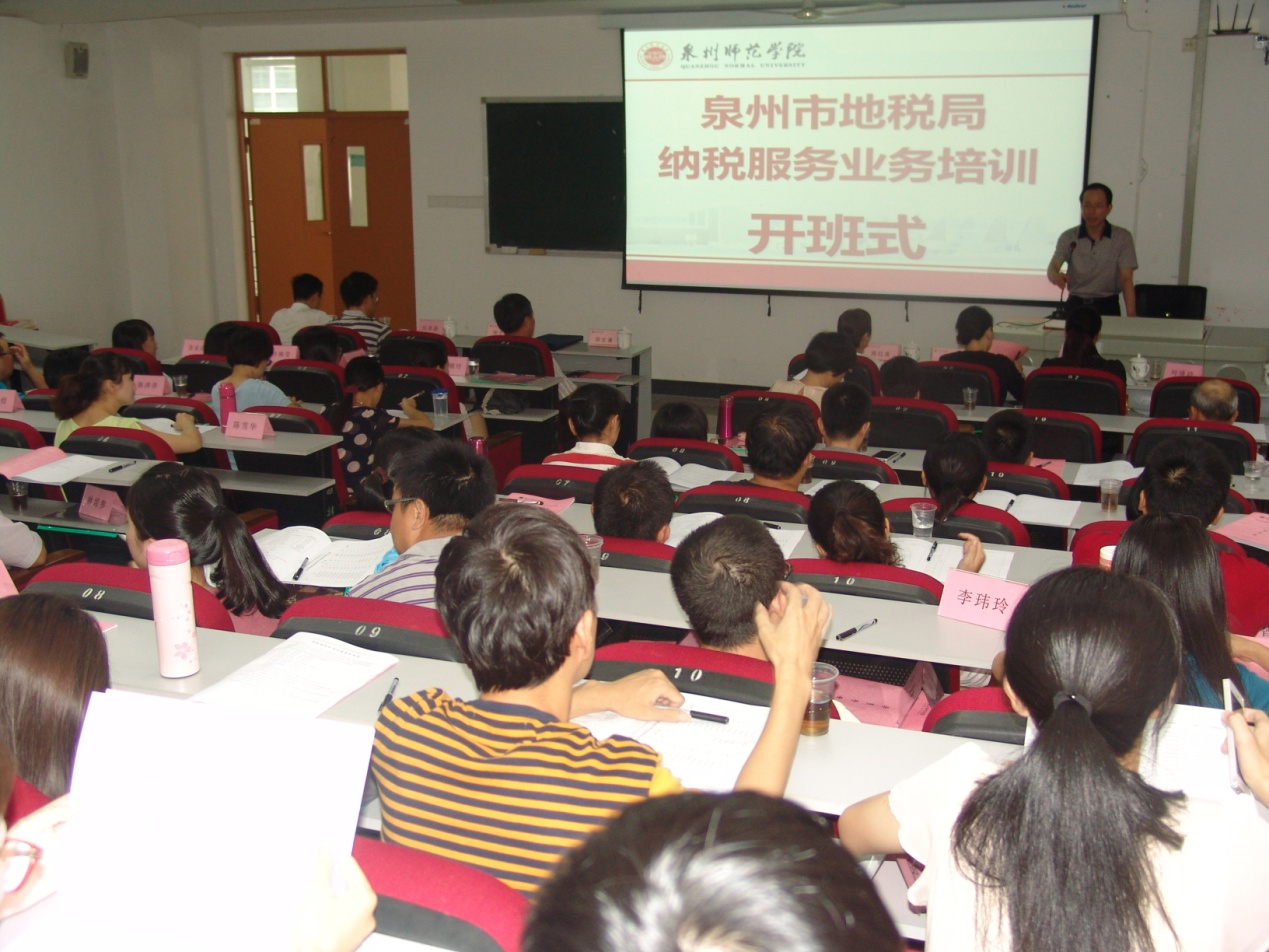 在学校的支持下,继续教育学院十分重视泉州市地税系统纳税服务业务培训工作,经过精心筹划,从课程设置、聘请教师、后勤保障等方面做了细致准备和合理安排。本期培训为该项目第一期培训,为期五天。