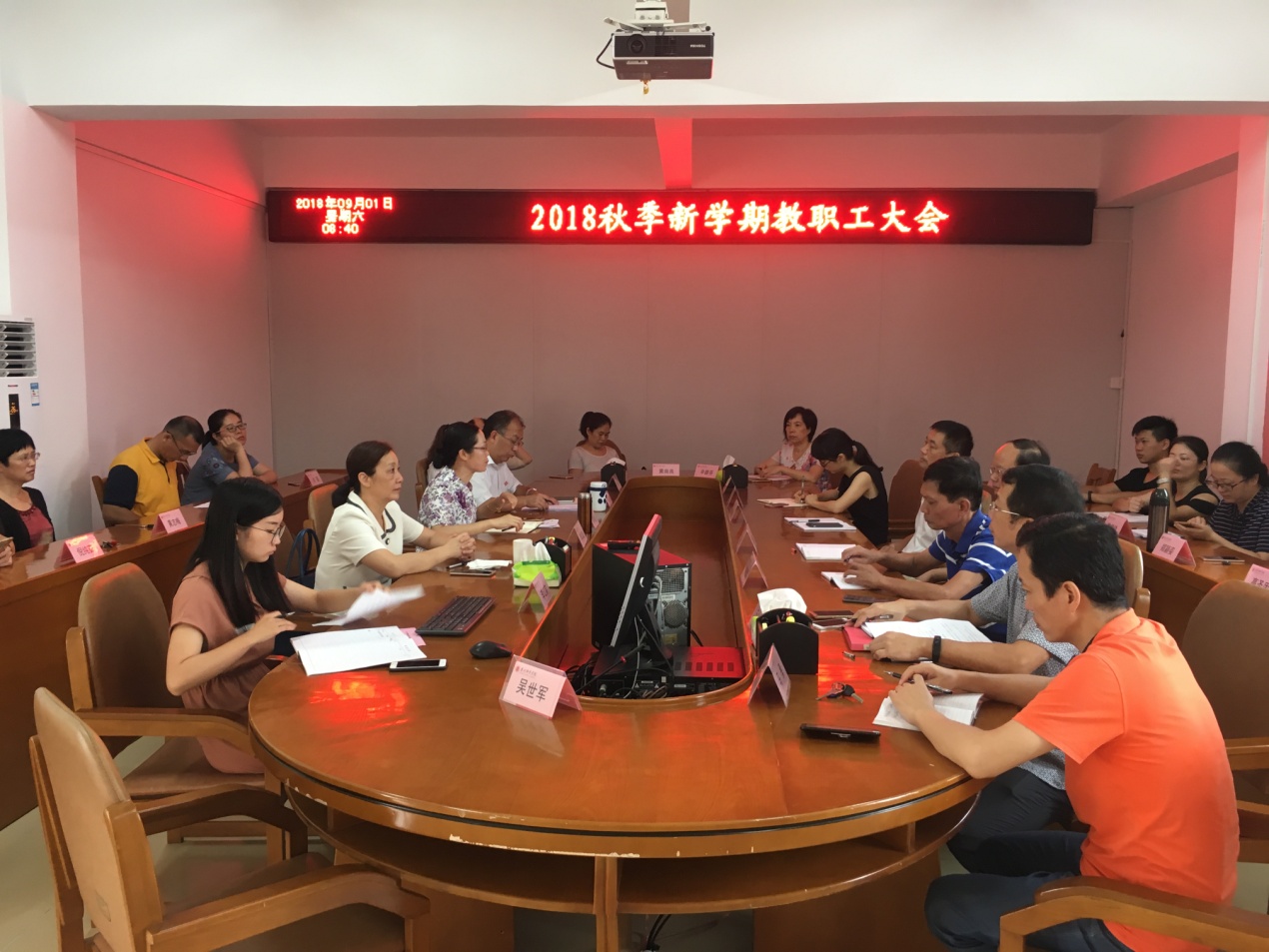 9月1日,开云kaiyun官网继续教育学院召开2018年秋季新学期教职工大会。我院院长陈秋燕、书记陈建宁、副院长陈红波及全体教职工参加了大会。陈秋燕主持会议。