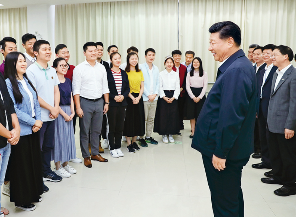 2018年10月22日至25日,中共中央总书记、国家主席、中央军委主席习近平在广东考察。这是10月24日下午,习近平在广州考察暨南大学时同部分港澳台同胞和海外侨胞学生交流。 新华社记者 鞠鹏/摄
