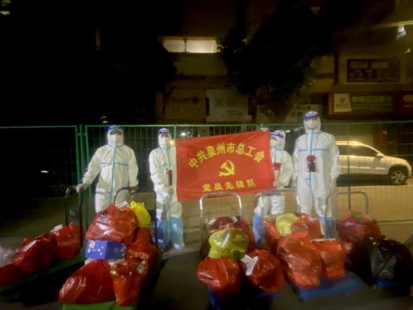 来自泉州市总工会的杨海涛、泉州市委党史和地方志研究室的柯峥,参加所在单位的党员先锋队,不惧风险,进驻封控疫区,除了要严把封控关,做好宣传和疏导工作之外,还为住户运送生活物资、发放核酸检测试剂,为老弱幼等特殊群体上门服务解决各种问题和困难。他们都曾经是人民子弟兵,保卫国家安全,现在虽然脱下军装,依然冲锋在前,敢打敢拼,让党旗飘扬在防疫最前沿。