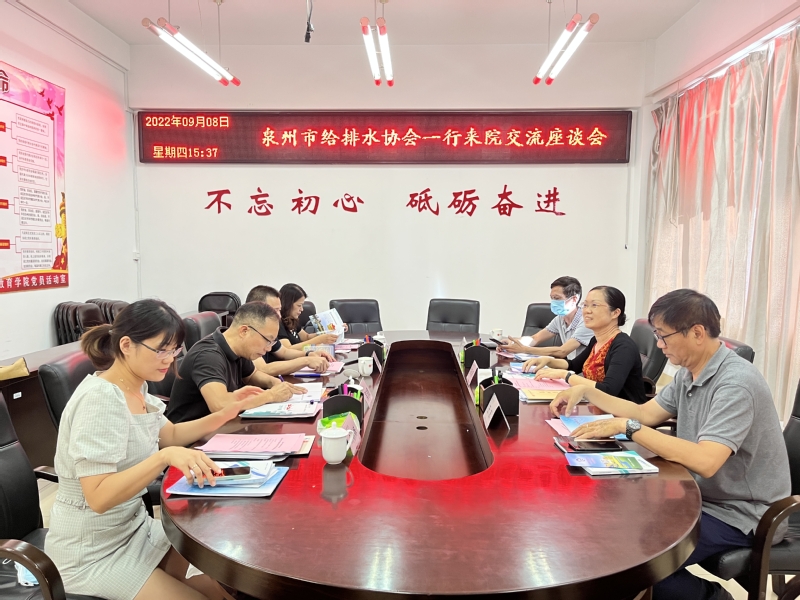 9月8日下午,泉州市给排水协会会长陈纪文一行来院交流座谈。学院负责人及相关科室负责人参加座谈会。