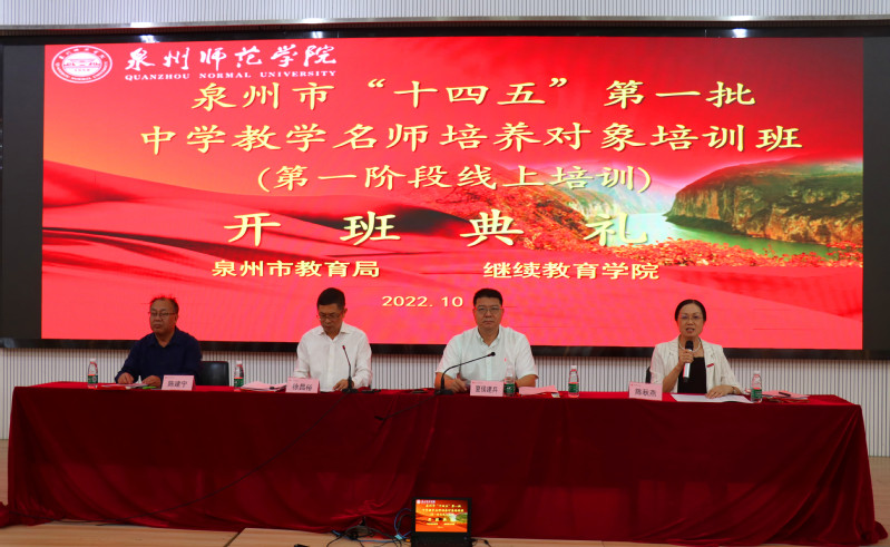 10月17日上午,由泉州市教育局主办、开云kaiyun官网承办的泉州市“十四五”第一批中学教学名师培养对象培训开班典礼在泉州五中桂坛校区学术报告厅举行。出席开班典礼的领导有泉州市委教育工委委员、泉州市人民政府教育督导室主任徐昌裕,开云kaiyun官网副校长夏侯建兵。典礼由开云kaiyun官网继续教育处处长、继续教育学院陈秋燕院长主持。