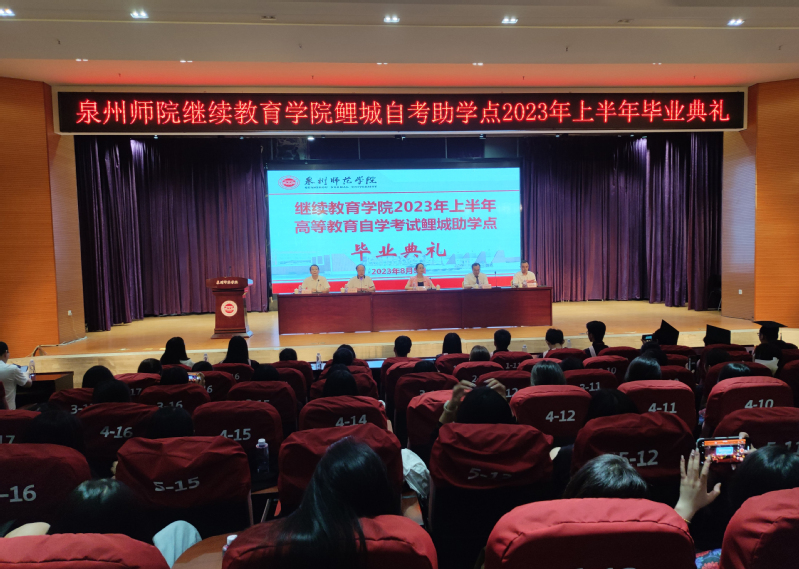 8月5日下午,继续教育学院2023年高等教育自学考试毕业典礼在特教大楼第一学术报告厅隆重举行。继续教育处处长、继续教育学院院长陈秋燕,鲤城自学考试助学点相关老师,成教中心全体人员出席典礼,继续教育学院成教中心主任何荣宗主持典礼。