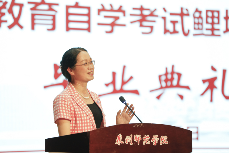 教师代表、鲤城自考助学点黄益杭老师寄语全体毕业生时刻谨记校训,不断创造人生的辉煌业绩,谱写青春的绚丽篇章。