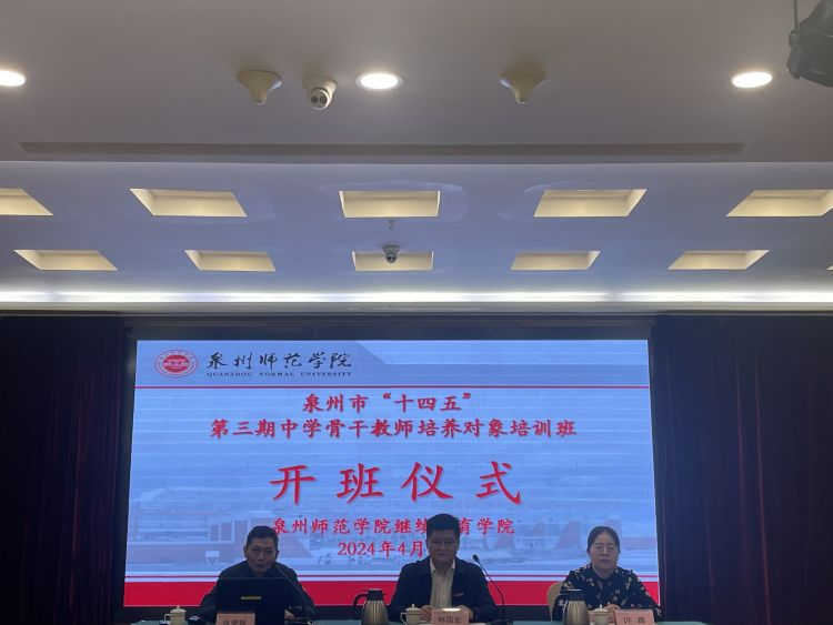 为进一步加强泉州市中学教师队伍建设,努力造就一支师德高尚、业务精湛、结构合理、充满活力的高素质专业化教师队伍,根据《泉州市教育局关于举办泉州市“十四五”中学骨干教师培养对象培训班的通知》,2024年泉州市“十四五”第三期中学骨干教师培养对象〔英语、思想政治(道德与法治)学科〕培训班于4月8日下午在泉州华侨大厦顺利开班。