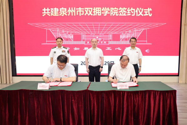 仪式上,双方签署共建“泉州市双拥学院”合作协议书,根据共建协议,双方将以“优势互补、共谋发展、互惠互利、实现共赢”为原则,积极进行社会化拥军新模式的有益探索和实践,探索建立“创新发展、多元联动、协同育人”的新机制,努力将双拥学院办成军人点赞、企业需要、社会满意的亮点工程。