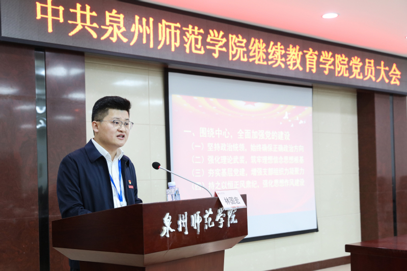 会上,林国宏向大会作了《继续教育学院党总支工作报告》,指出,过去的五年是学校抢抓机遇、改革创新、奋勇前行的五年;也是学院深化改革、转型发展、攻坚克难、整体发展的五年。站在下一个五年新的起跑线上,学院将牢记为党育人、为国育才的初心使命,在校党委的坚强领导下,打造学院高质量发展新局面。同时提出了未来发展的新要求:一要开拓工作思路;二要强化队伍建设;三要抓好意识形态;四要创新党建活动。报告号召全院师生保持定力,接续奋斗,与时俱进,奋发有为,为谱写学院继续教育高质量发展新篇章而努力奋斗!