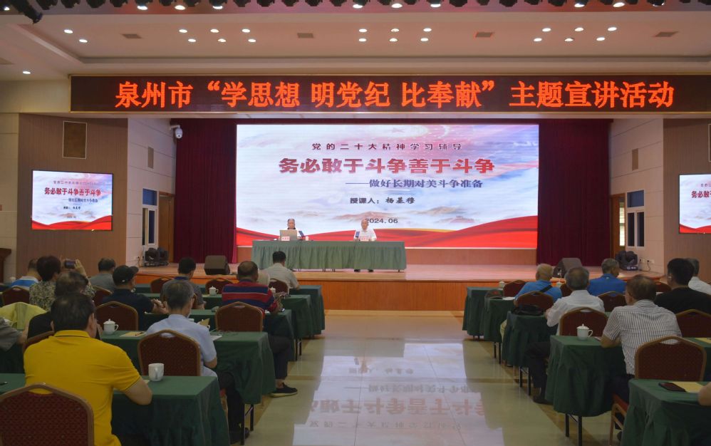 6月12日上午,开云离退休党委组织部分离退休党员参加泉州市“学思想 明党纪 比奉献”首场主题宣讲活动,听取省军区党委原常委、动员局原局长、省政府征兵办原主任杨基穆为老同志作《党的二十大精神学习辅导——务必敢于斗争善于斗争》专题辅导报告。