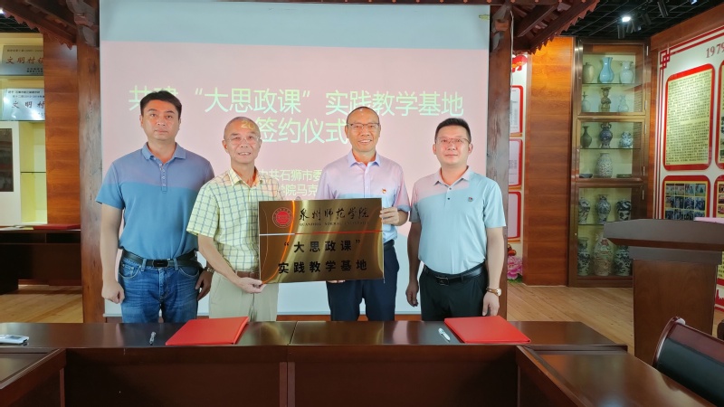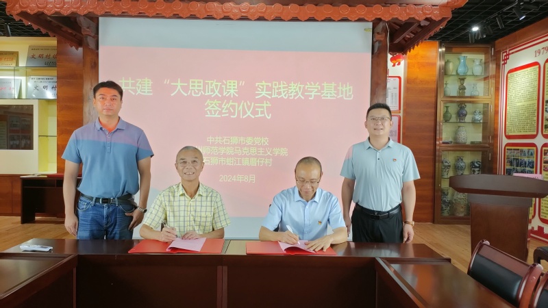 为深入学习贯彻习近平总书记对学校思政课建设作出重要指示精神,加快构建“大思政课”工作格局,8月20日,马克思主义学院联手石狮市委党校建立“大思政课”实践教学基地,分别与石狮市蚶江镇的“全国文明村”厝仔村、李子芳烈士纪念馆所在地永宁镇子英村举行签约仪式,学院党总支书记颜水发,石狮市委党校有关部门负责人、蚶江镇厝仔村和永宁镇子英村相关负责人出席。校地双方表示,今后将进一步在思政课教学资源共享、开展教学教研活动及主题党日活动等方面加强合作,充分发挥“大思政课”实践教学基地的育人作用。