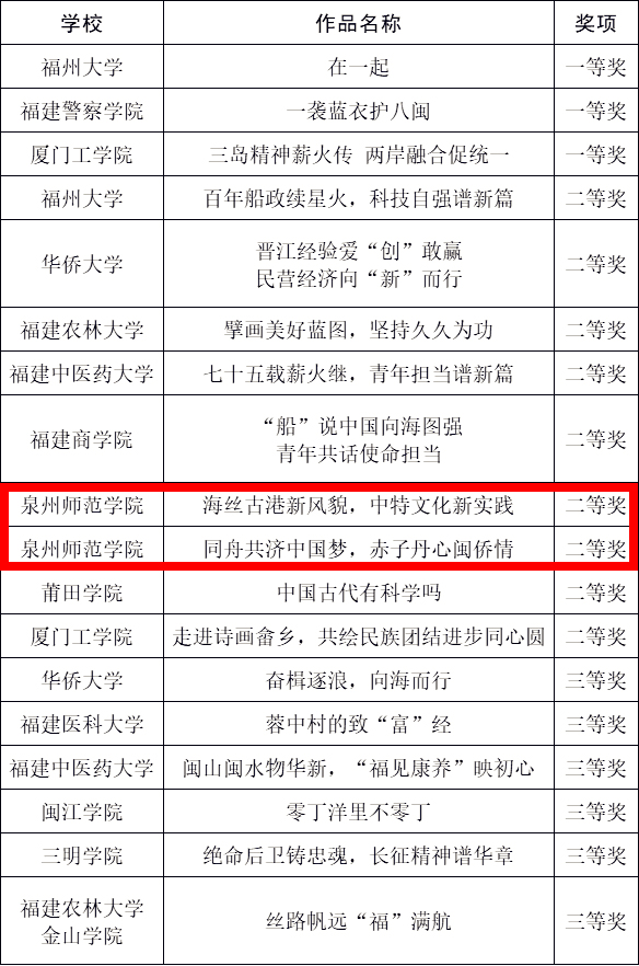近日,由教育部主办的习近平新时代中国特色社会主义思想大学习领航计划主题教育活动获奖名单揭晓。开云马克思主义学院杨洋老师、校团委黄丹琳老师指导的《同舟共济中国梦,赤子丹心闽侨情》和马克思主义学院刘红玉老师、文学与传播学院洪盈莹老师指导的《海丝古港新风貌,中特文化新实践》荣获第八届全国高校大学生讲思政课公开课展示活动(本科组)二等奖。