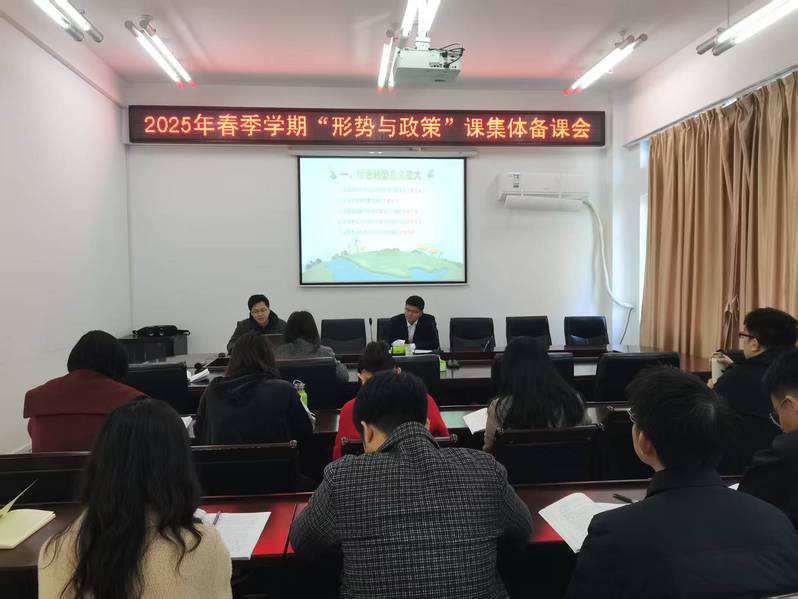 3月20日,“形势与政策”教研部围绕“厚植绿色底色 建设美丽中国”主题在学院会议室开展第二次专题集体备课会,副院长兼形势与政策教研部主任陈欣主持会议,参会教师进行磨课。