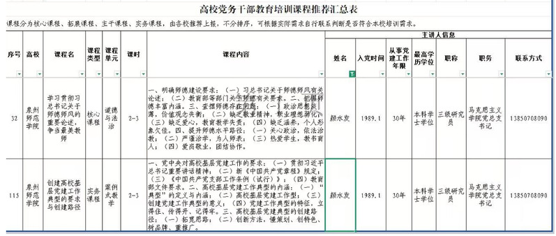 近日,中共福建省委教育工委办公室公布了高校党务干部教育培训课程推荐名单,学院党总支书记颜水发研究员申报的《学习贯彻习近平总书记关于师德师风的重要论述,争当最美教师》(核心课程)和《创建高校基层党建工作典型的要求与创建路径》(实务课程)入选培训课程库。