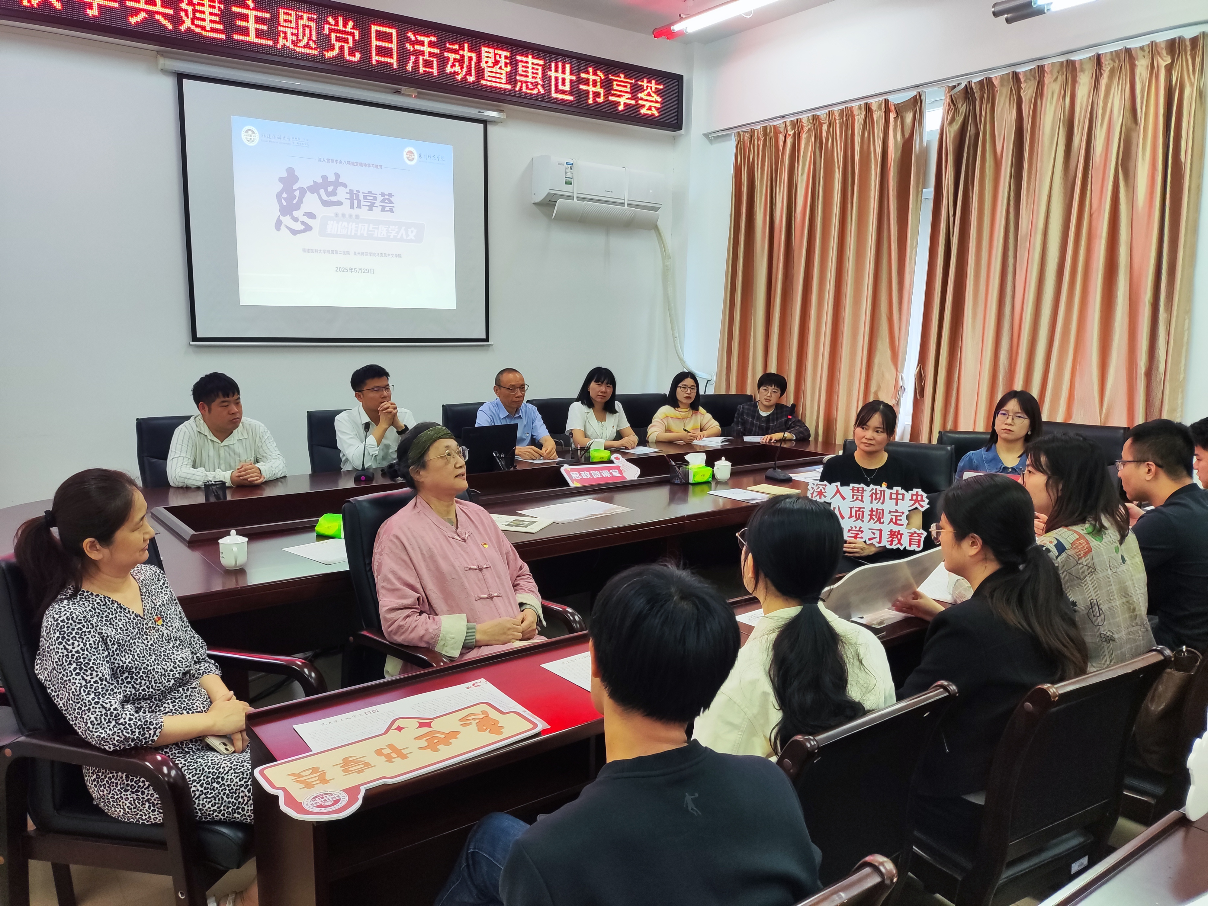 双方党支部以“勤俭作风与医学人文”为主题,开展深入贯彻中央八项规定精神学习教育,紧扣《习近平关于加强党的作风建设论述摘编》及新修订的《党政机关厉行节约反对浪费条例》,结合《我的医学生涯》等书籍,进行解读、共读,畅谈厉行勤俭节约要求,树立过紧日子的理念,分享以人为本的行医理念。