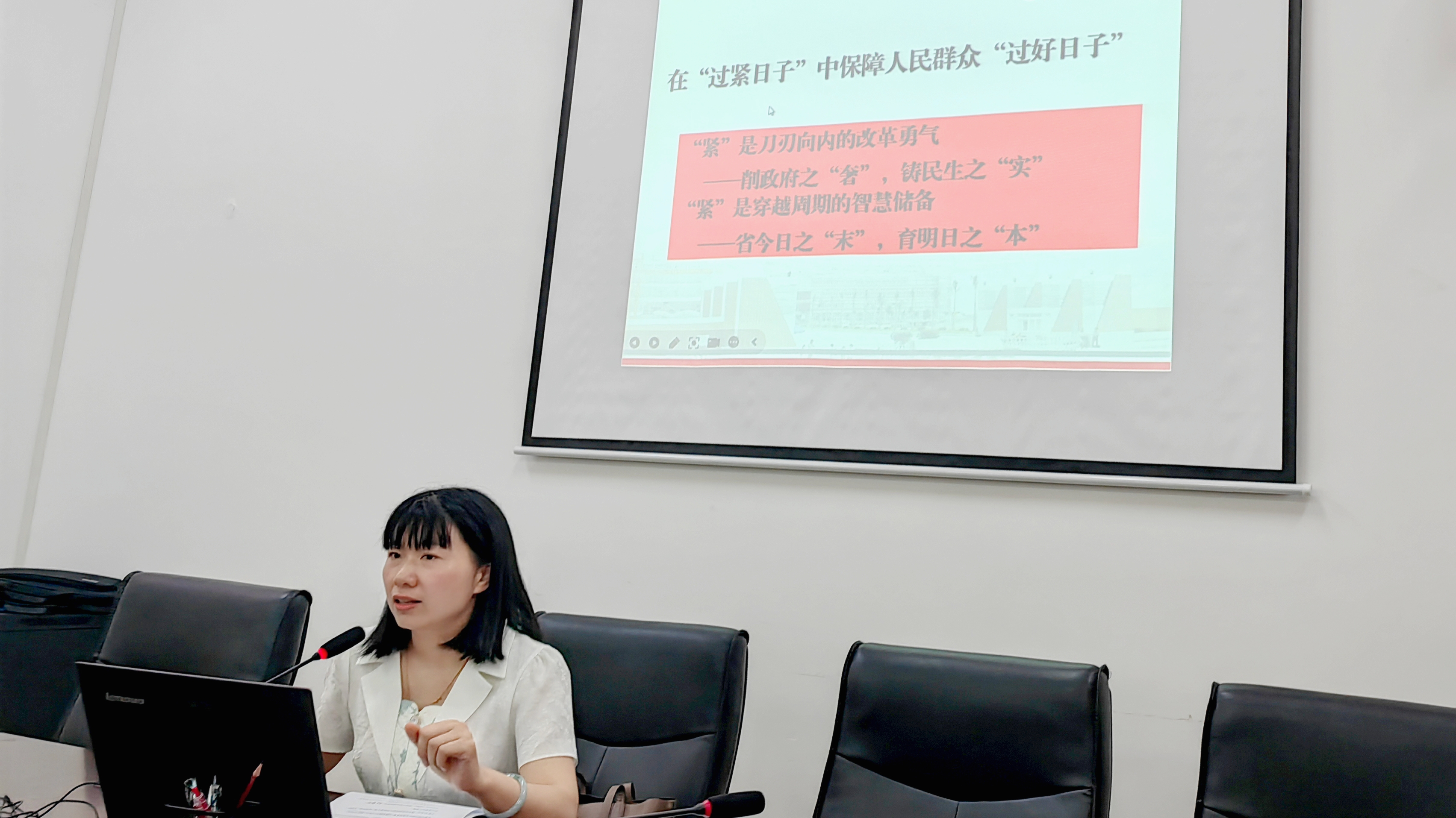 会上,马克思主义学院教工第五党支部书记、教授陈亚敏以《在“过紧日子”中保障人民群众“过好日子”》为题,讲授了一堂主题鲜明、内涵深刻的思政微党课。党课紧密结合新修订的《党政机关厉行节约反对浪费条例》精神实质与实践要求,系统阐述了什么是“过紧日子”,为什么要“过紧日子”,怎么把“过紧日子”变成“过好日子”。党课强调,党政机关带头过“紧日子”,根本目的是为了让人民群众过上更可持续、更有保障、更加美好的“好日子”。全体党员干部要深刻理解其辩证关系,自觉做《条例》的模范遵守者、“过紧日子”的积极践行者、“好日子”的有力推动者,将学习成果转化为厉行节约、勤勉履职的实际行动,为国家、社会发展贡献力量。