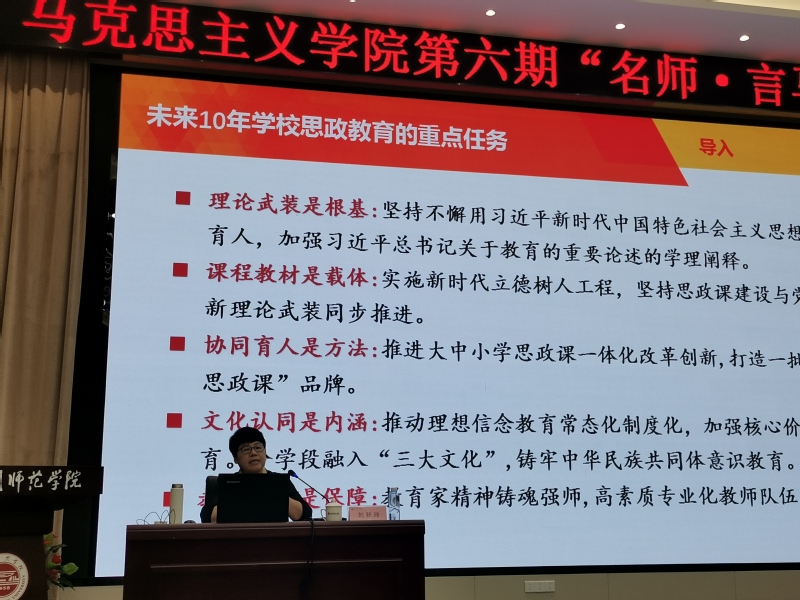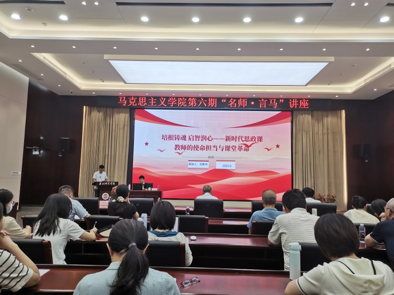 6月19日,马克思主义学院在孙中山纪念堂第一会议室举办第六期“名师·言马”讲座,邀请福建农林大学刘新玲教授作《培根铸魂启智润心——新时代思政课教师的使命担当与课堂革命》专题讲座。讲座由马院副院长郑长青主持,全体教职工参加。