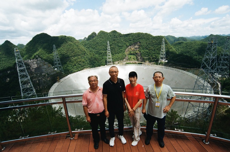党员教师们先在南仁东纪念馆参观了“时代楷模天眼巨匠南仁东事迹”“中国天眼微缩模型”,深刻感受到南仁东敢为人先、坚毅执着的科学精神,胸怀祖国、服务人民的爱国情怀,淡泊名利、忘我奉献的高尚情操。之后登上观看“天眼”的山顶。从观测台往下近距离沉浸式地看到了“天眼”的全貌,这个由6670 根钢索编制的索网、50根巨大钢柱支撑的直径500米的圈梁、4450块反射面单元以及2225根下拉索等组成的国之重器,默默地帮助科学家探索宇宙的起源、演化及其结构,也为探索外星生命提供重要线索。