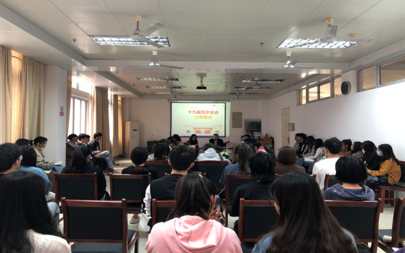 11月12日,我院党委书记王宝山以党的十九届五中全会精神为主题,为学生主干上思政课。学院辅导员郑琳泓、傅艺伟和骆泊屹一起聆听了本次思政课。