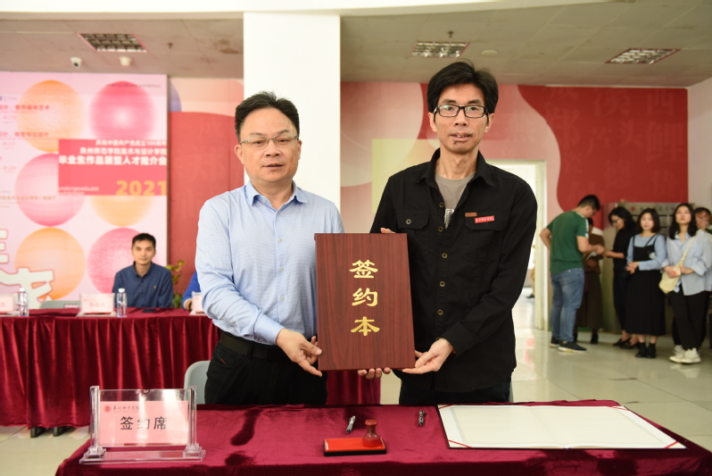 4月13日上午,美院与泉州第一中学、泉州市艺术馆、泉州市冠亚彩色印刷有限公司、福建三六九创意设计有限公司、福建筑可丽文化旅游发展有限公司、福建省谷仓创业投资服务有限责任公司、泉州青春志动漫科技有限公司、泉州万有引力动漫科技有限公司,在美术大楼一楼大厅举行校校、校地、校企合作共建签约仪式。泉州第一中学校长徐明杰,泉州市艺术馆馆长丁聪辉,各企业负责人和美院党政领导、各科室人员,以及师生代表等参加了仪式。签约仪式由美院黄思阳副教授主持。