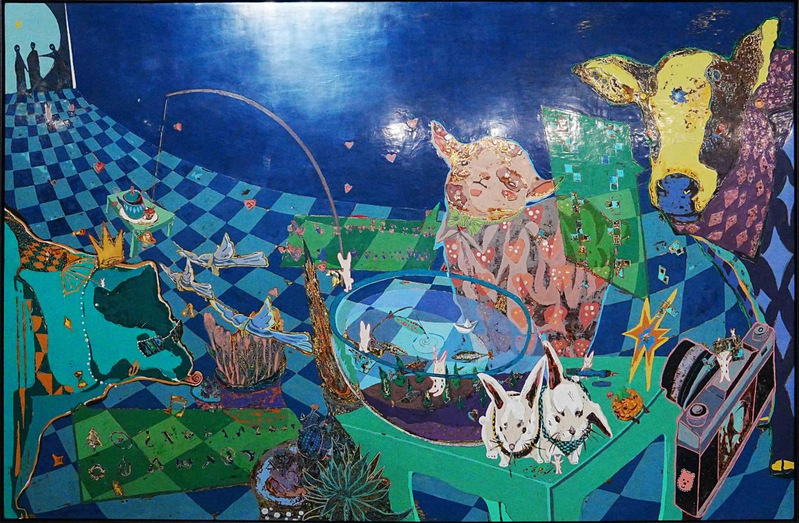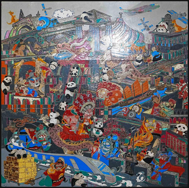 熊袆晖漆画《那夜它说梦见了你我他》120x180cm