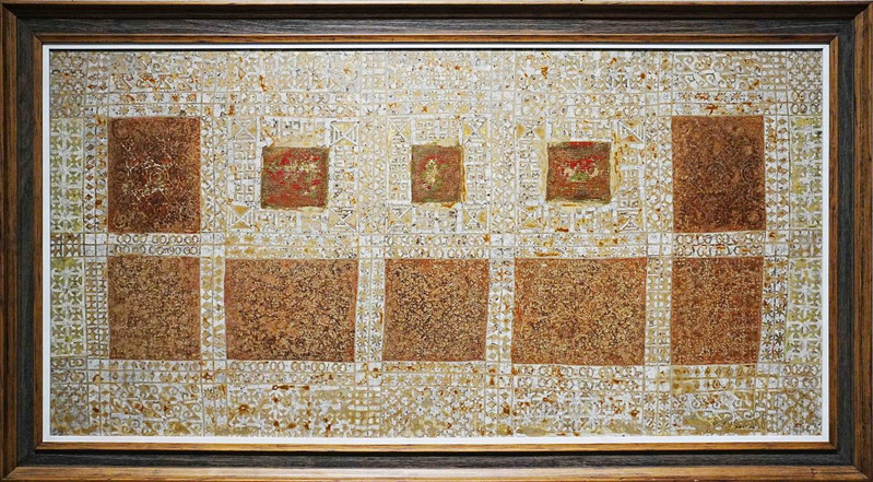 卫军老师漆画《有风的窗》90x180cm