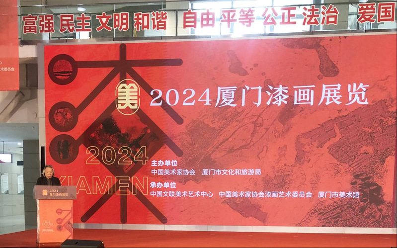 本次参展的作者既有成就斐然的资深漆画家,也有崭露头角的漆画界新人,他们以独特的创作方式在题材选择、表现视角和价值追求等方面展现出漆画鲜活的当代性,既有对当代人文精神的深刻表现,也有对中国优秀传统文化的深入阐发,体现了新时代美术创作的新面貌。此外,本次厦门漆画展览还同时开启三个配套展览:“漆韵流光 匠心独运——厦门漆画展历届获奖作品馆藏展”,“厦门漆画50年回顾展”和“鹭岛漆韵——2024厦门市美协漆画专委会委员作品展”。作品内容丰富、手法多样,展现了当代漆画的基本发展轨迹。