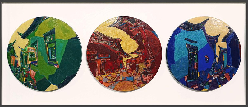 刘楚萱漆画《厝忆》60x60cm x3