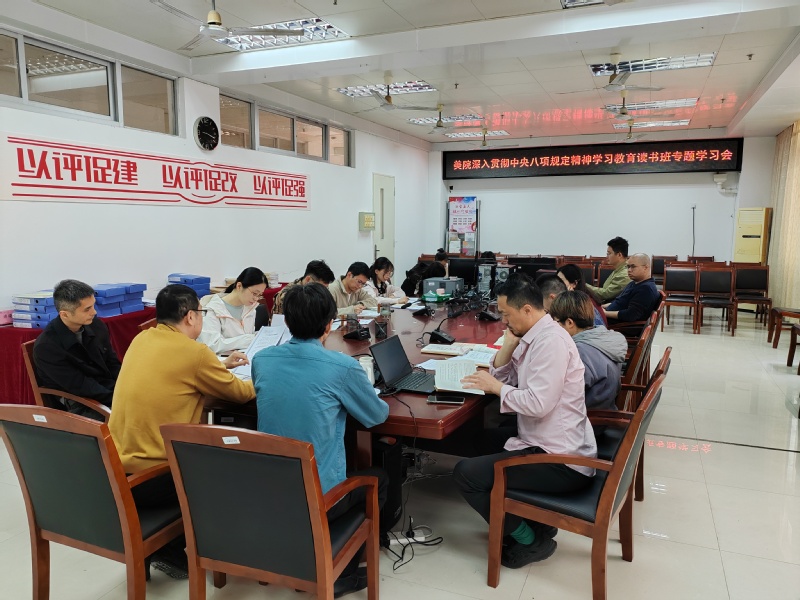 4月7日上午,美术与设计学院召开深入贯彻中央八项规定精神学习教育读书班暨党委理论学习中心组学习会,学习习近平总书记关于加强党的作风建设的重要论述和中央八项规定及其实施细则精神。学院党委书记王宝山主持并讲话,学院党政领导、党委委员、党委组织员、三办负责人、党支部书记及全体行政人员参加。