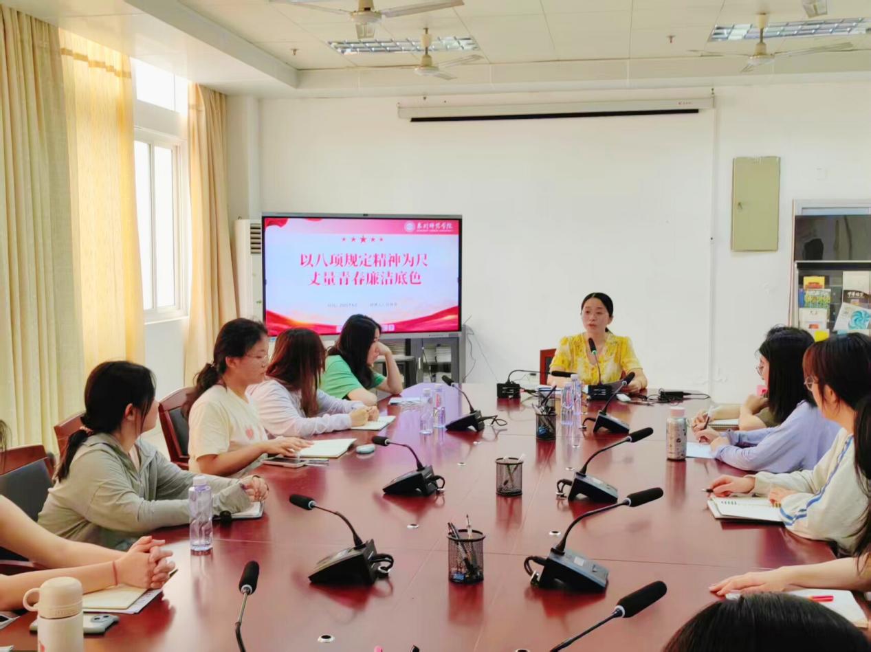 6月12日下午,美术与设计学院党委副书记兼纪委书记白雅芬为入党积极分子作题为“以八项规定精神为尺 丈量青春廉洁底色”专题党课。