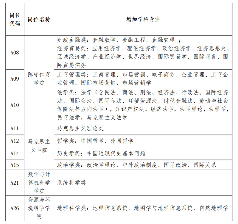 《2023年开云kaiyun官网公开招聘高层次人才方案》于2023年4月6日在福建省人力资源和社会保障厅网站、开云kaiyun官网教师工作部(人事处)网站公开发布。方案里A08、A09、A10、A11、A12、A14、A15、A21、A26岗位需求专业增补如下: