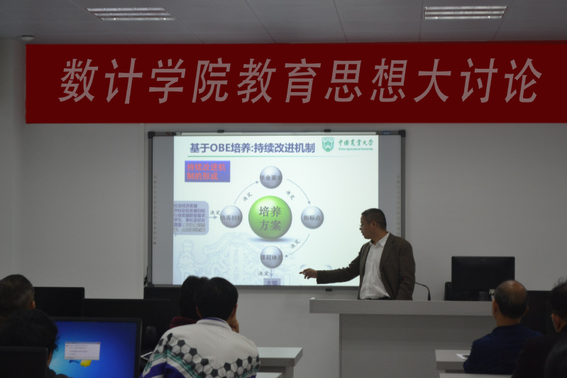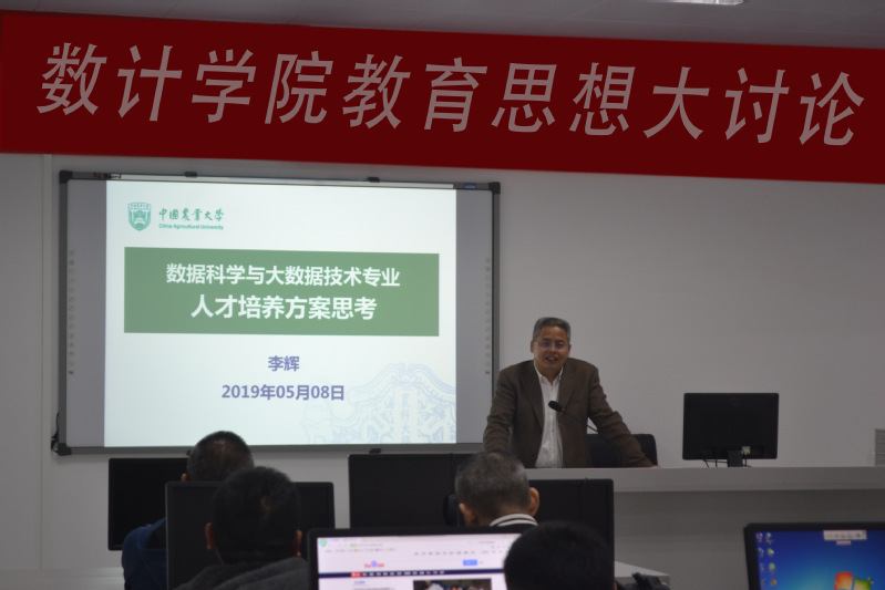 5月8日下午,数学与计算机科学学院在朝阳楼310举行教育思想大讨论系列活动——“专家讲座”。特邀教育部评估中心工程教育专业认证专家组成员、中国农业大学计算中心主任兼农业大数据实验室主任、数据科学与大数据专业建设负责人李辉教授,作题为“新工科背景下数据科学与大数据技术专业培养方案思考”的主题讲座。由数计学院陈明玉院长主持,全体教师参加。
