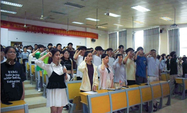 6月13日,学院学生会执行主席、学生宣讲团团长何凤琴面向全体学生党员开展学习贯彻新修订《中国共产党纪律处分条例》宣讲,并共同观看警示教育专题片,通过违纪违法典型案例,以案示警、以案明纪,促进学生党员受警醒、明底线、知敬畏,扣好“第一粒扣子”。宣讲会结束后,在何凤琴的领誓下,与会同志重温入党誓词。