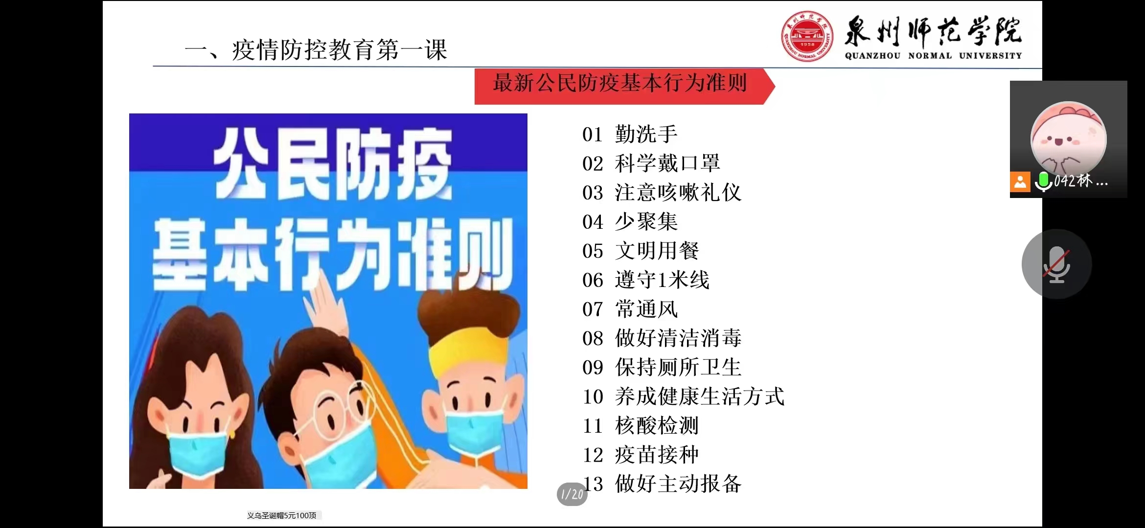 团委委员林惠瑜围绕《疫情防控教育第一课》与同学们做了团课分享。引导同学们自觉遵守防疫政策和公民防疫基本准则,主动佩戴口罩,不聚集,做好个人防护,起到青年团员表率作用,争做中国好青年。