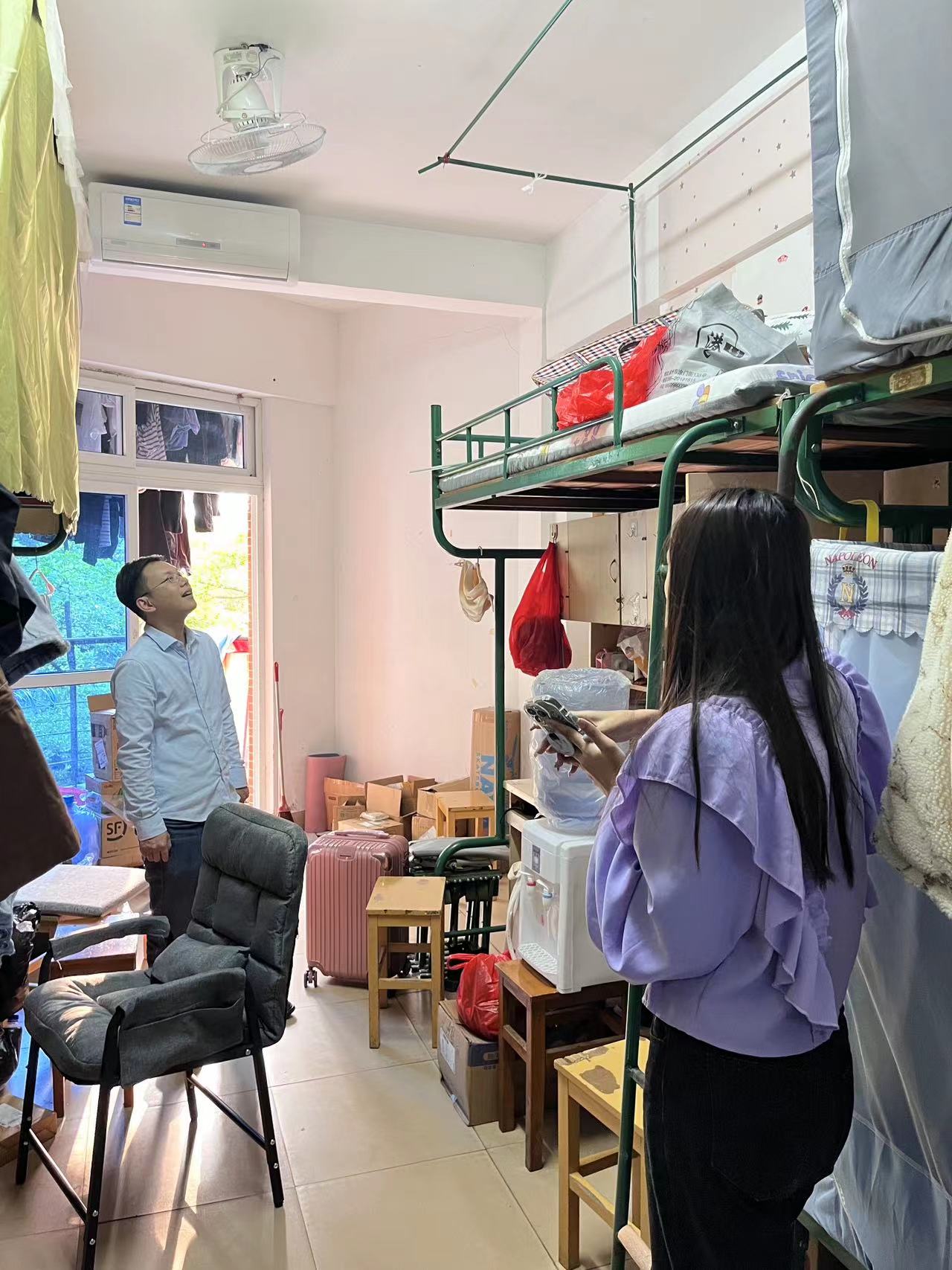 在学生宿舍,安全检查工作主要针对是否使用违规电器、是否存在私拉电线、安全用电等。检查组教育引导同学们要做好安全用电,增强消防安全意识。老师们叮嘱同学们五一节外出一定要注意安全,不到江河湖海游玩,提高安全防范意识和自我保护意识,做好个人健康防护,无论遇到什么问题,要多和老师们反馈、沟通。