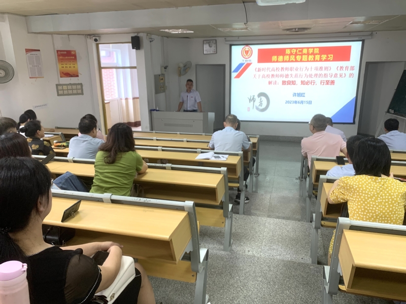 6月1日下午,我院召开师德师风专题教育第一次大会。学院党委书记通报了近期几起因师德失范引发的舆情和近期教育部公开曝光的11起高校教师违反师德师风的典型案例。他强调,要通过此次专题教育活动,进一步加强师德师风建设,提高教师师德修养,规范教师从教行为,增强教师教书育人、以身立教的社会使命感,努力提高我院教师的思想政治素质和职业道德水平,不断改善和巩固学院教风学风建设。