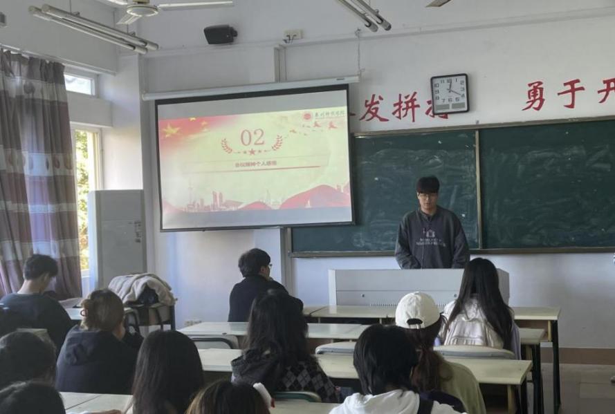 学生会主席团成员张轩妍引经据典,对“一二·九”运动的历史进行了阐述,强调作为学生骨干,应时刻铭记“一二·九”运动精神,传承红色基因和革命英雄的家国情怀,感悟领袖关怀,在中华民族伟大复兴的新征程上贡献青春力量。