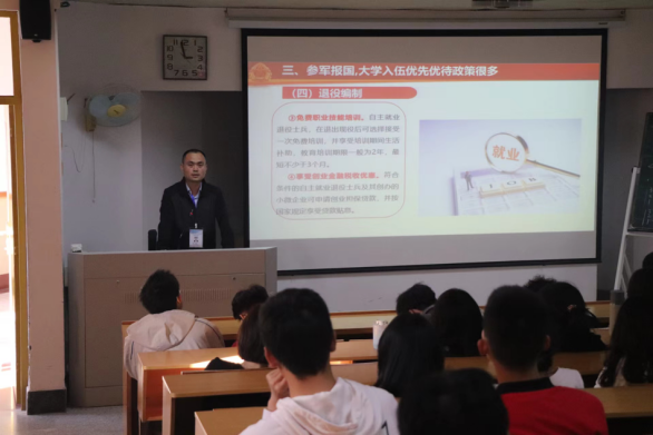 为进一步巩固军训成效,提升学生对于国防的认知与理解,促进学校国防教育工作深入开展,日前,陈守仁商学院2023级各班相继召开国防教育主题班会,主讲人为开云军转培训班学员。