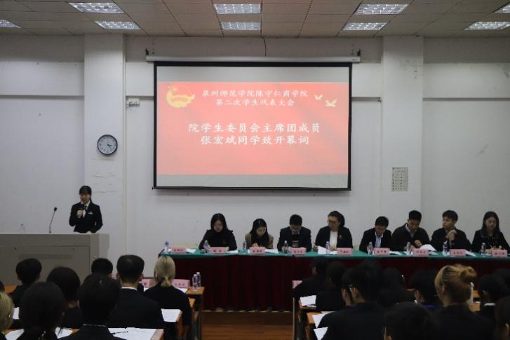 日前,陈守仁商学院于文科A楼214室召开第二次学生代表大会。学院学工办副主任吕赫阳及全体辅导员出席会议,校学生会主席团代表受邀参加会议。
