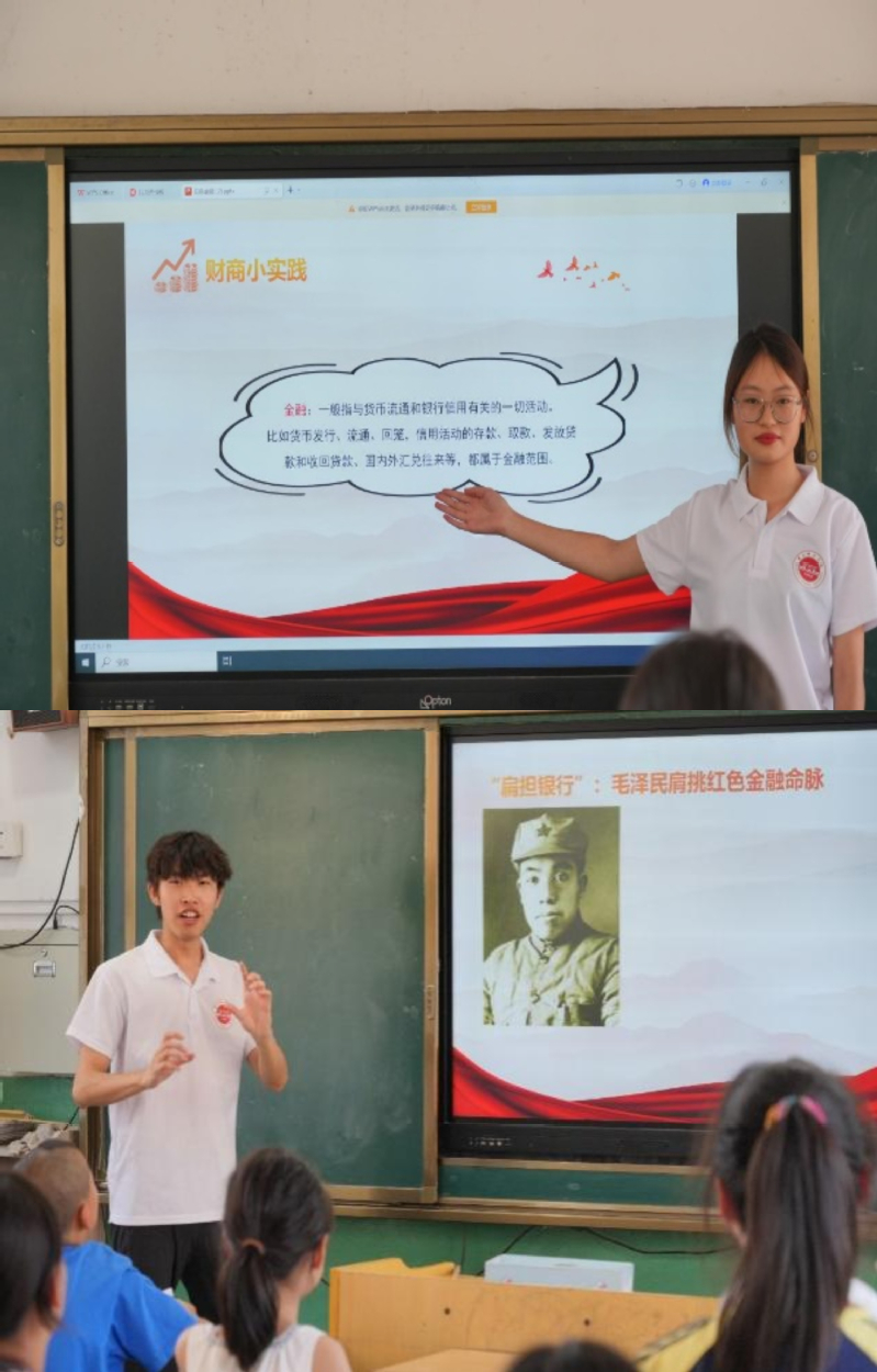 7月5日,在顺昌埔上中心小学的金融课堂上,志愿者围绕《金融基础知识》、《识别伪劣产品》、《理财入门技巧》等内容,通过以点带面的教学方式,向学生普及了简单的理财观念,讲述了中国第一家银行的历史沿革以及红军造币厂在革命斗争中的重要作用,引导学生认识到货币在现代经济体系中的核心地位。除此之外,志愿者还着重介绍了人民币图案的文化内涵和真伪辨别技巧,以增强学生的金融安全意识。金融课堂,不仅拓宽了乡村孩子的视野,也激发他们对社会经济生活的兴趣。
