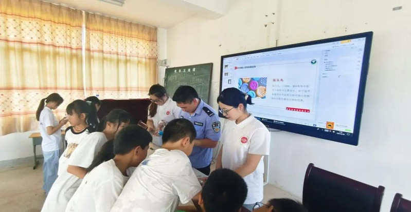 加强安全教育,守护生命健康。7月5日下午,支教普法队联合洋墩乡派出所开展禁毒教育活动,通过授课讲解、实物观摩等方式,向学生们介绍了多种毒品的名称、特征及其危害;7月9日下午,支教普法队员还向学生们系统讲授防溺水和防地震的相关知识和技巧,并组织地震应急逃生演练,进一步提高了小学生的安全防范意识和能力。